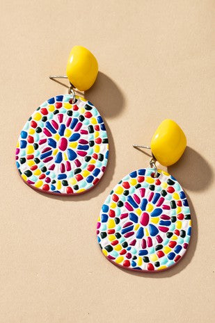 Multi-color acrylic teardrop shape mosaic drop earrings