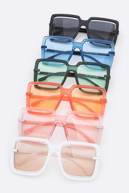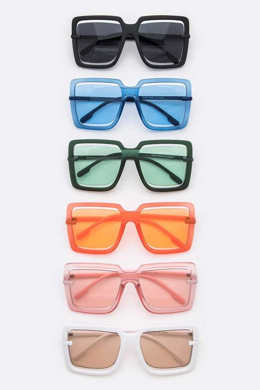 Cut up with these cutout square sunglasses in a variety of colors. One size fits most.