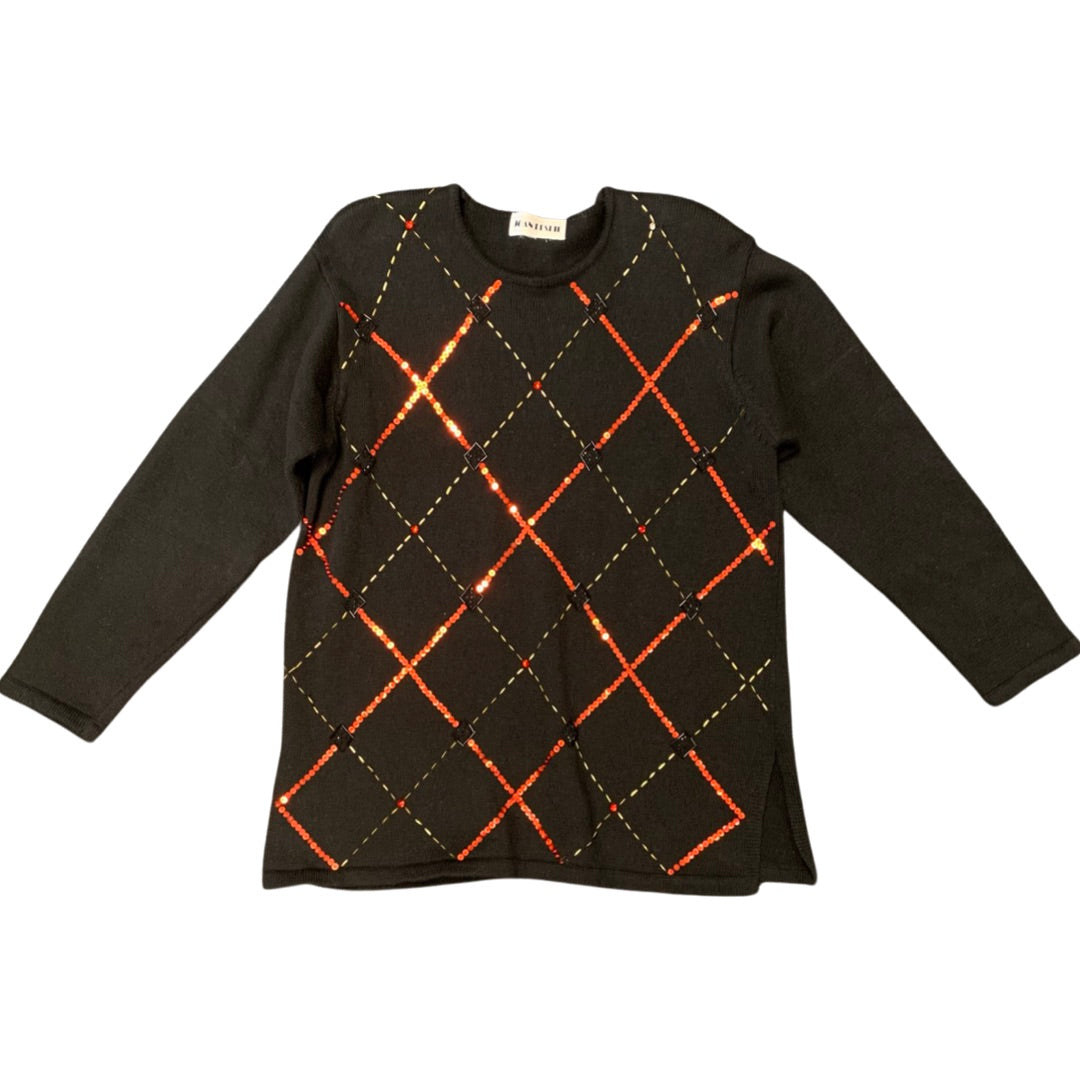 Black long sleeve vintage sweater with sequin embellishment