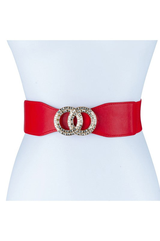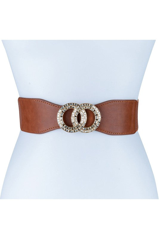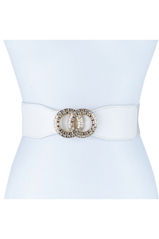 - Oversized Gold Casting with Rhinestone Cloud Double Circle Ring Buckle Fashion Belt.